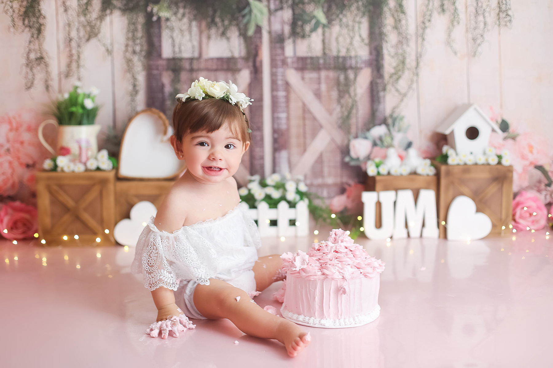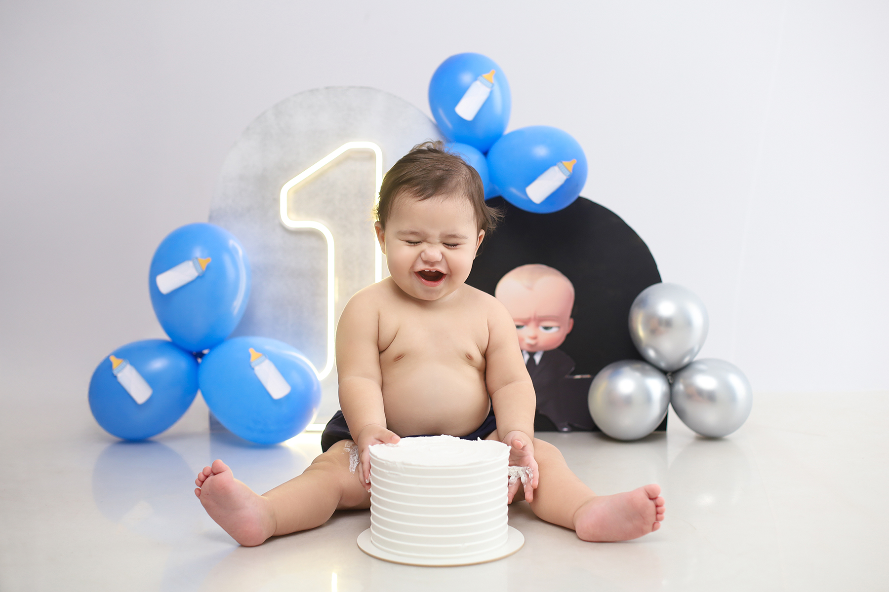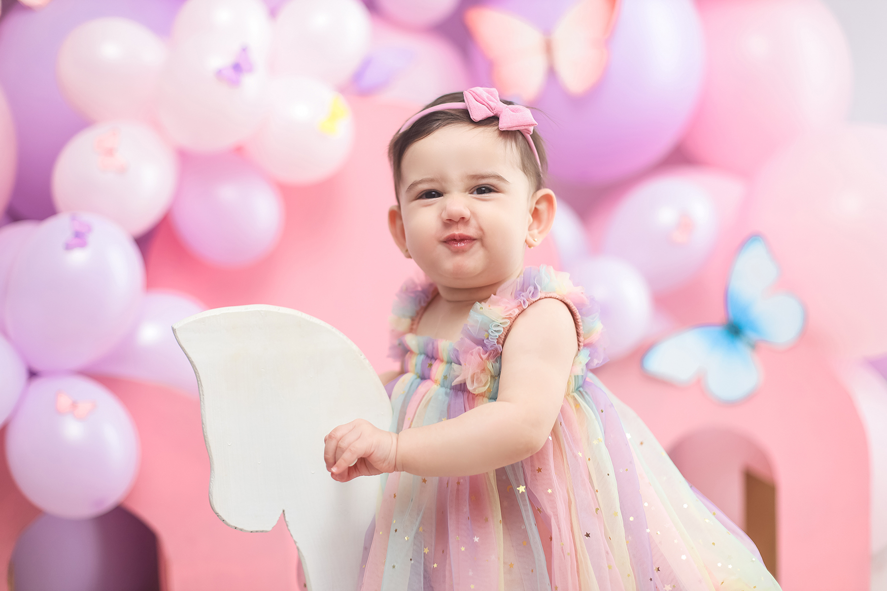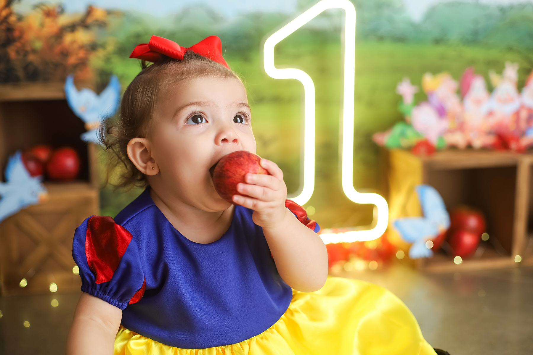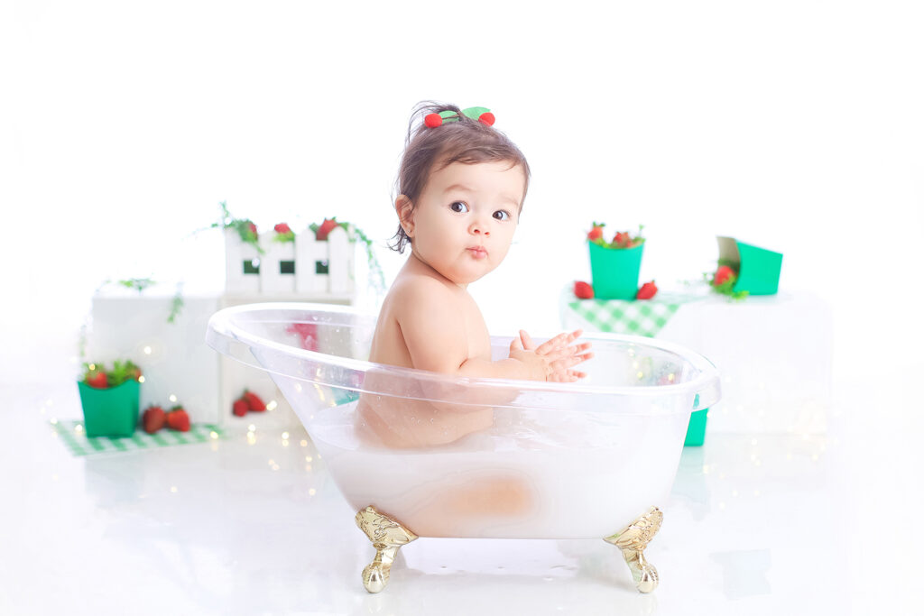 Sobre as fotos com o bolo: É opcional. A mamãe pode optar por fazer as fotos no cenário de um aninho sem o bolo. Convenhamos que as fotos com o bolo são fofas demais! Algumas mamães não querem que o bebê coma docê nessa idade, essas mamães podem substituir o bolo clássico de chantili por um “bolo de frutas”.