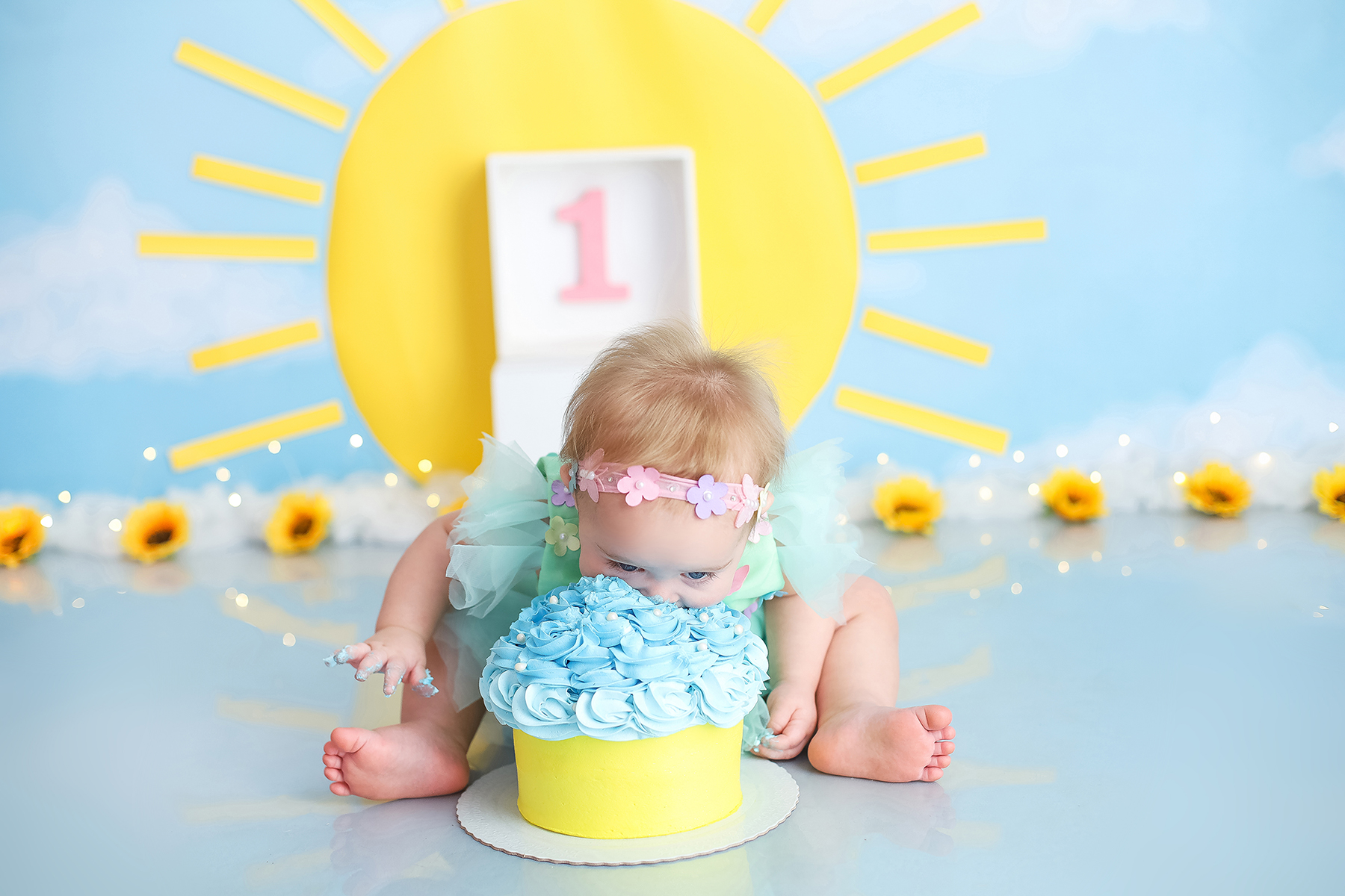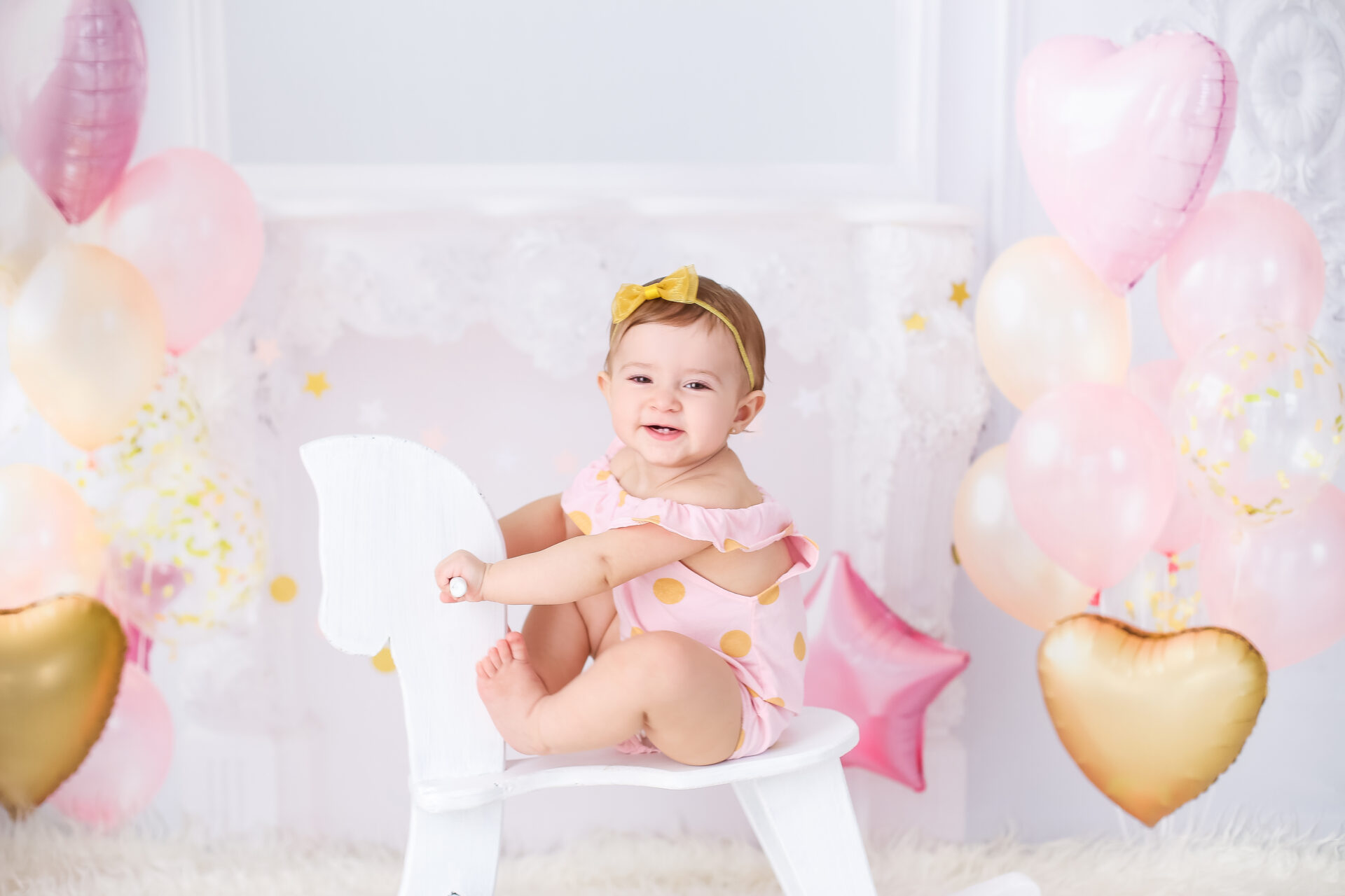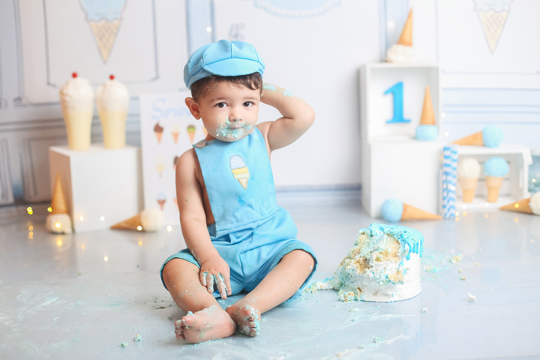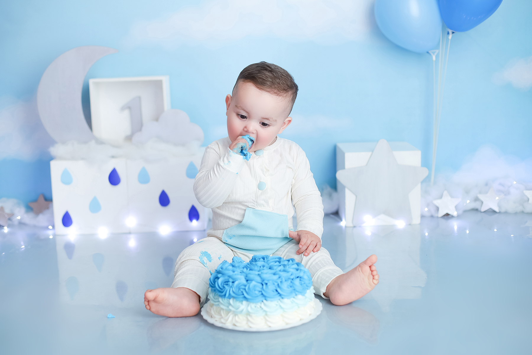 Sobre as fotos com o bolo: É opcional. A mamãe pode optar por fazer as fotos no cenário de um aninho sem o bolo. Convenhamos que as fotos com o bolo são fofas demais! Algumas mamães não querem que o bebê coma docê nessa idade, essas mamães podem substituir o bolo clássico de chantili por um “bolo de frutas”.