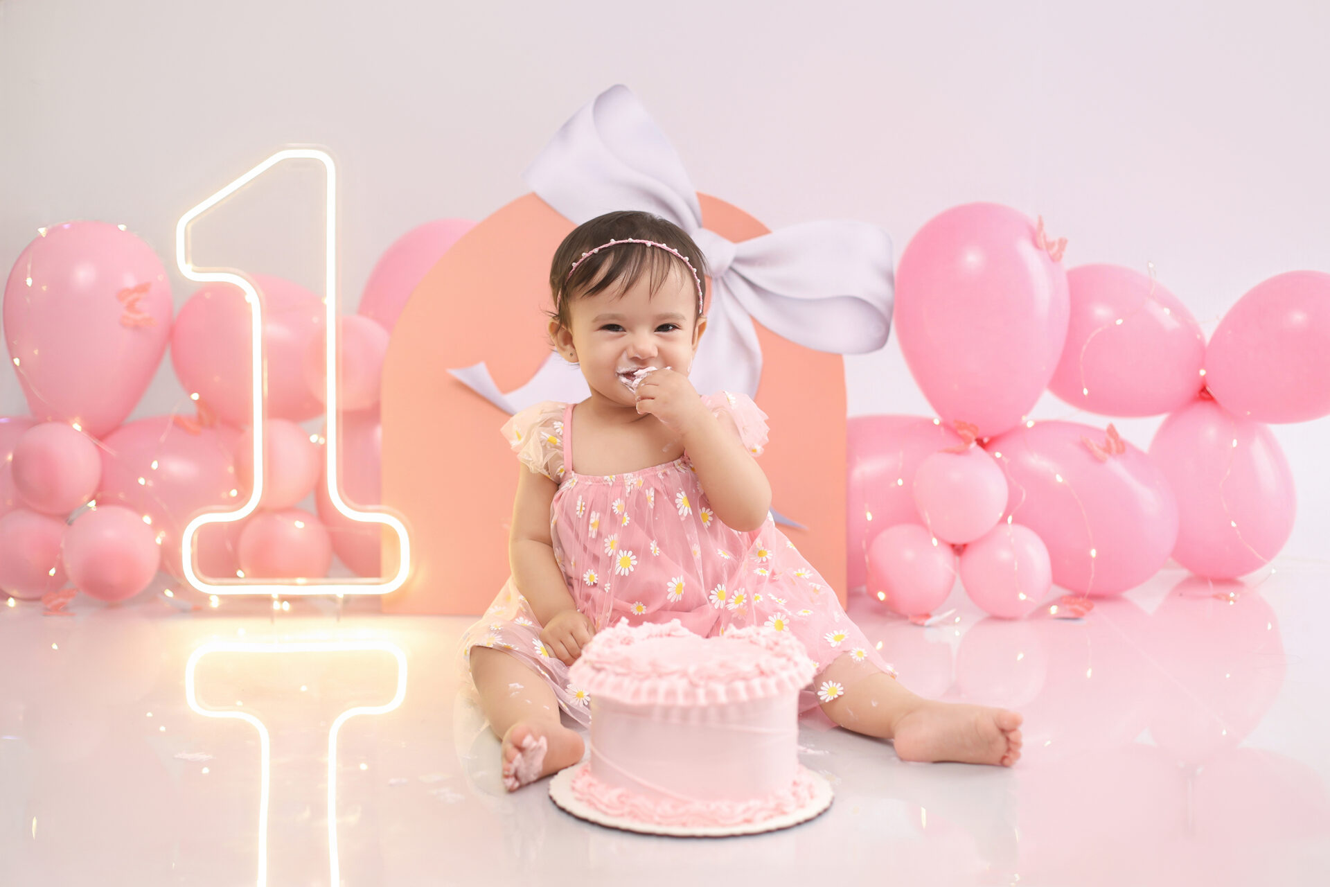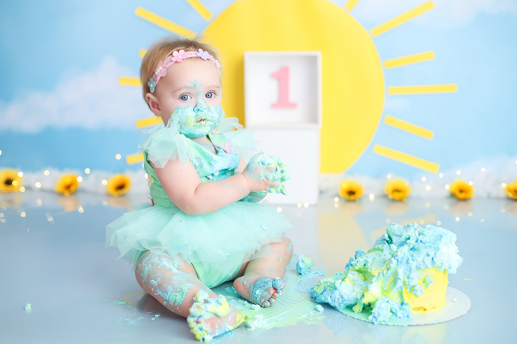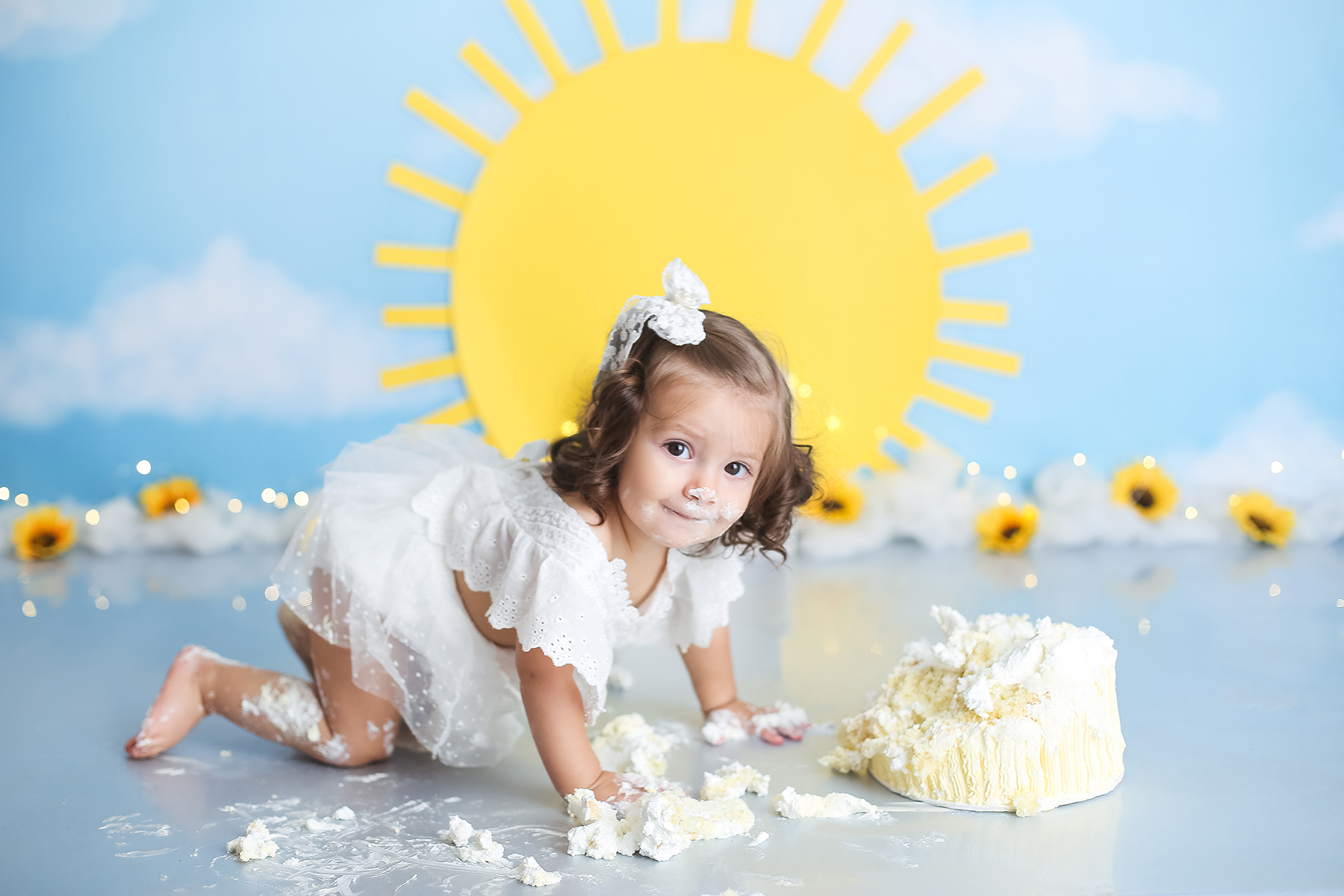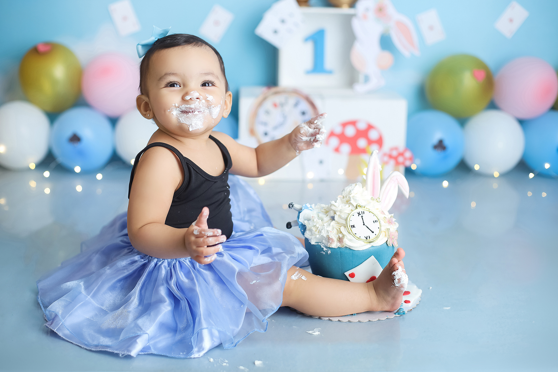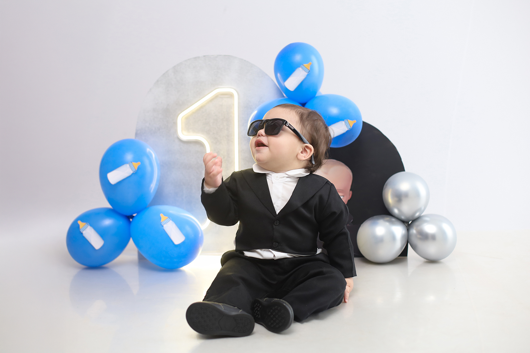 Sobre as fotos com o bolo: É opcional. A mamãe pode optar por fazer as fotos no cenário de um aninho sem o bolo. Convenhamos que as fotos com o bolo são fofas demais! Algumas mamães não querem que o bebê coma docê nessa idade, essas mamães podem substituir o bolo clássico de chantili por um “bolo de frutas”.