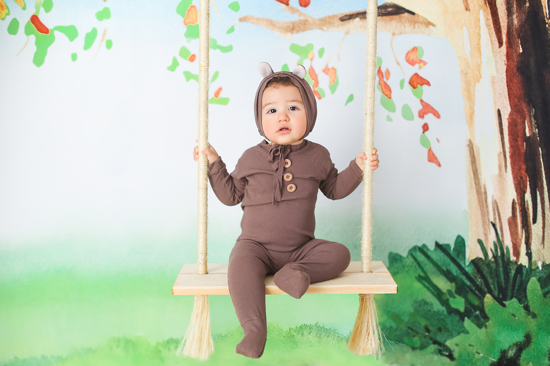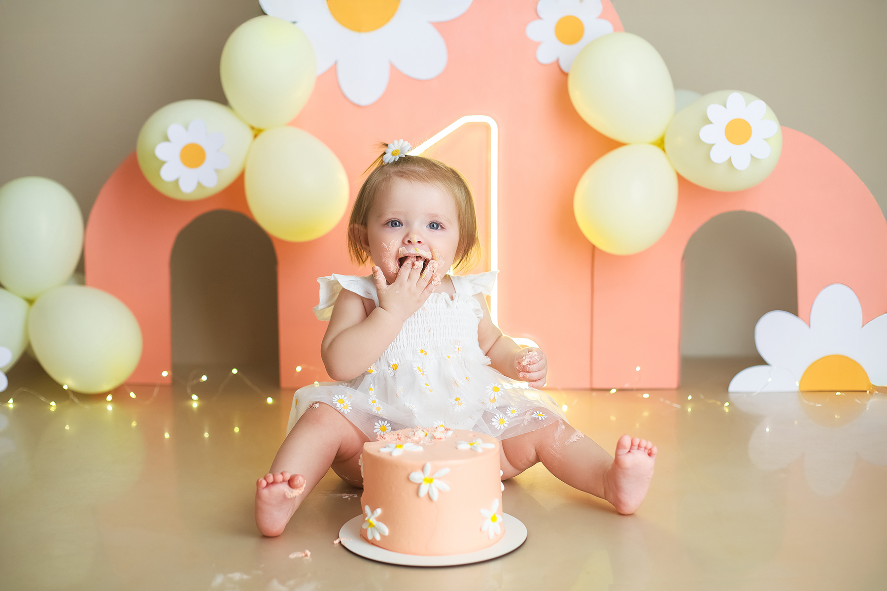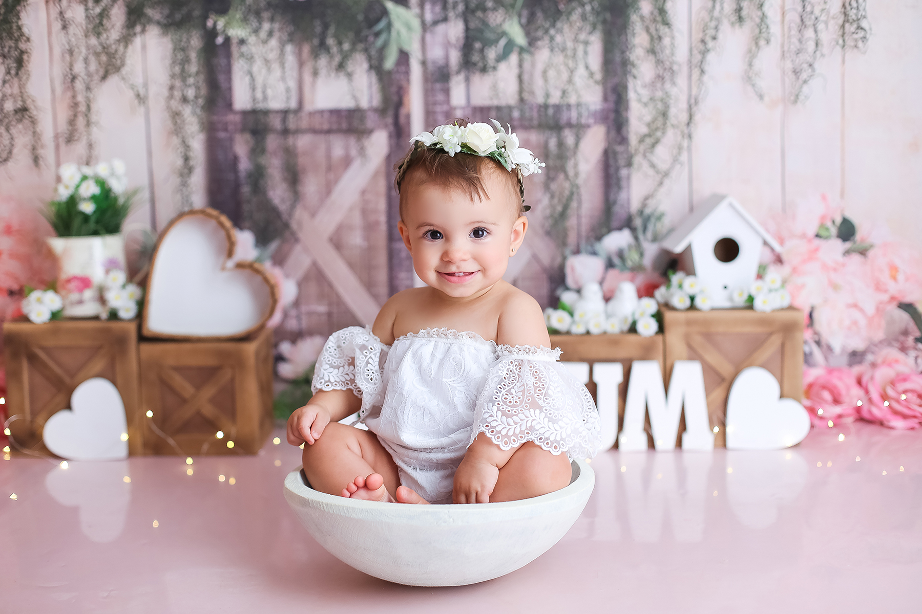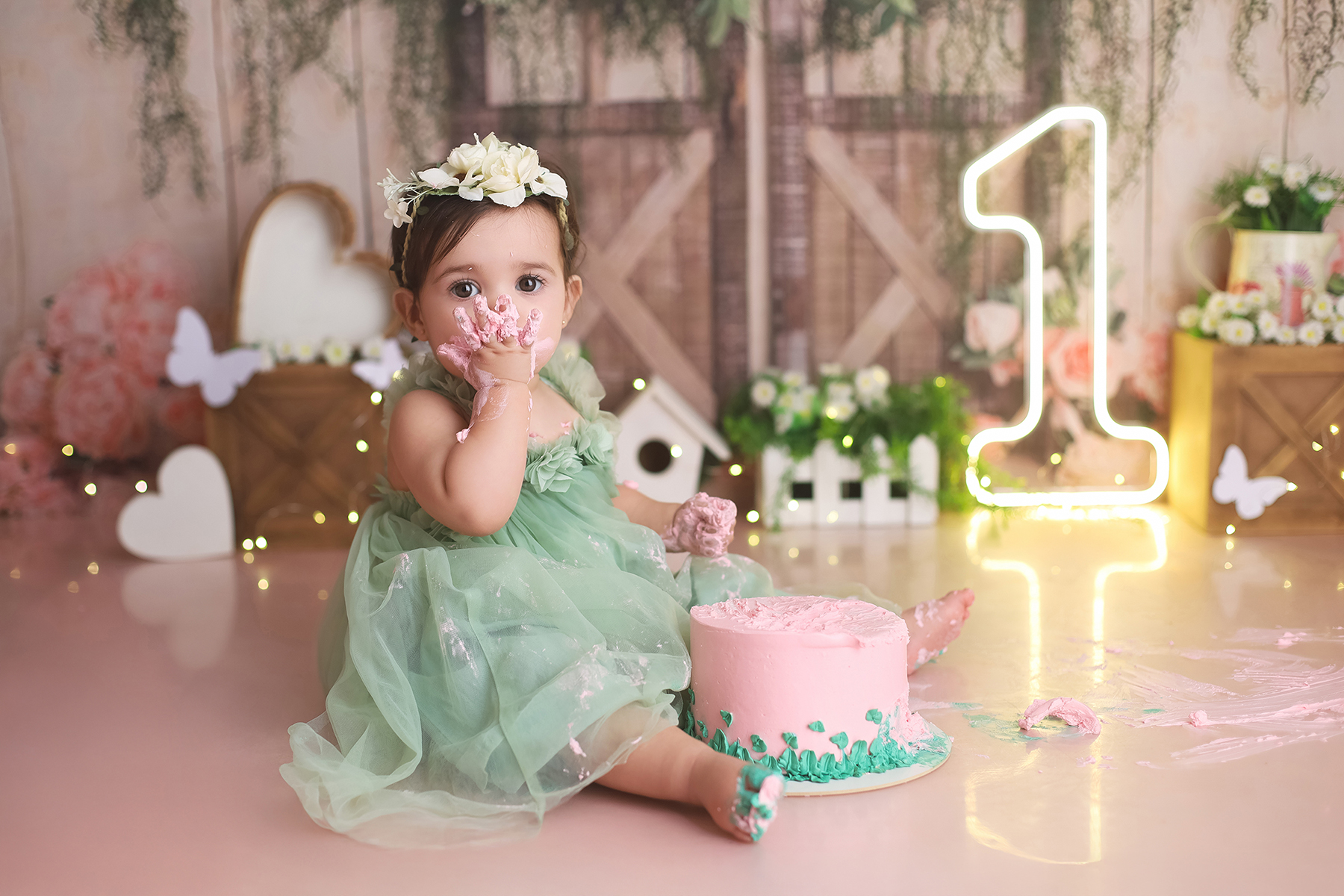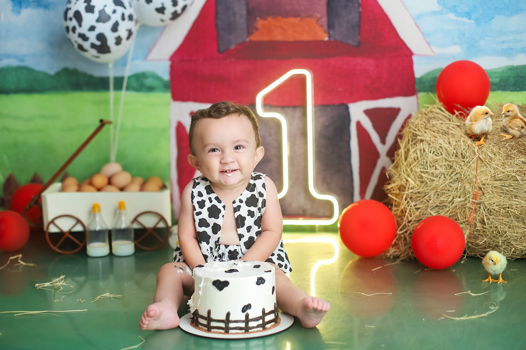 Sobre as fotos com o bolo: É opcional. A mamãe pode optar por fazer as fotos no cenário de um aninho sem o bolo. Convenhamos que as fotos com o bolo são fofas demais! Algumas mamães não querem que o bebê coma docê nessa idade, essas mamães podem substituir o bolo clássico de chantili por um “bolo de frutas”.